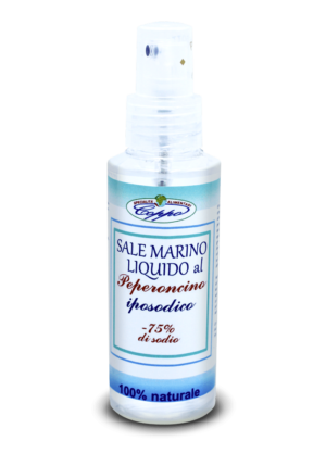 Sale iposodico spray -75% di sodio all’aroma tartufo: E’ un prodotto totalmente italiano, nuovo e rivoluzionario,naturale al 100%:l’unico sul mercato ottenuto per distillazione,concentrato e con alto contenuto di sapidita’, antiossidante e allo stesso tempo con un contenuto di sodio molto piu’ basso di un normale sale,puo’ essere adatto a persone con varie patologie. 5 vaporizzate corrispondono a circa 0,1 grammi di sale.